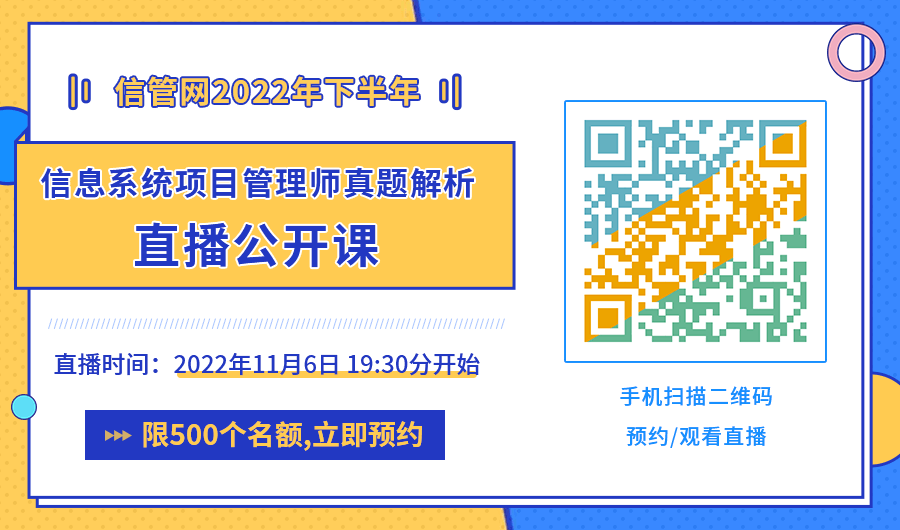 最后想說的肯定是希望各位同學(xué)養(yǎng)好精神,預(yù)祝大家順利通過考試,拿到軟考證書!同時信管網(wǎng)也會在考試結(jié)束之后更新2022下半年軟考考試真題答案及解析,歡迎大家考后來對答案估分,還有真題解析公開課等著大家,敬請關(guān)注。